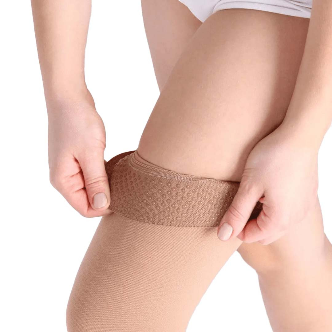 - Սիլիկոնե հիմքով էլաստիկ ժապավեն (նաև լայն ազդրի համար), որը նրբորեն ֆիքսում է գուլպան՝ չխանգարելով արյան շրջանառությանը